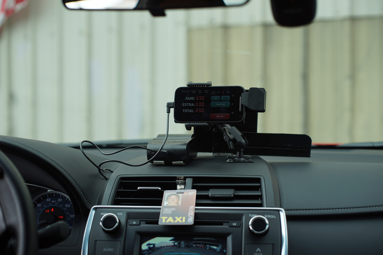 This taxicab is outfitted with Flywheel's GPS-approved taximeter, the first of its kind to be approved by regulators.